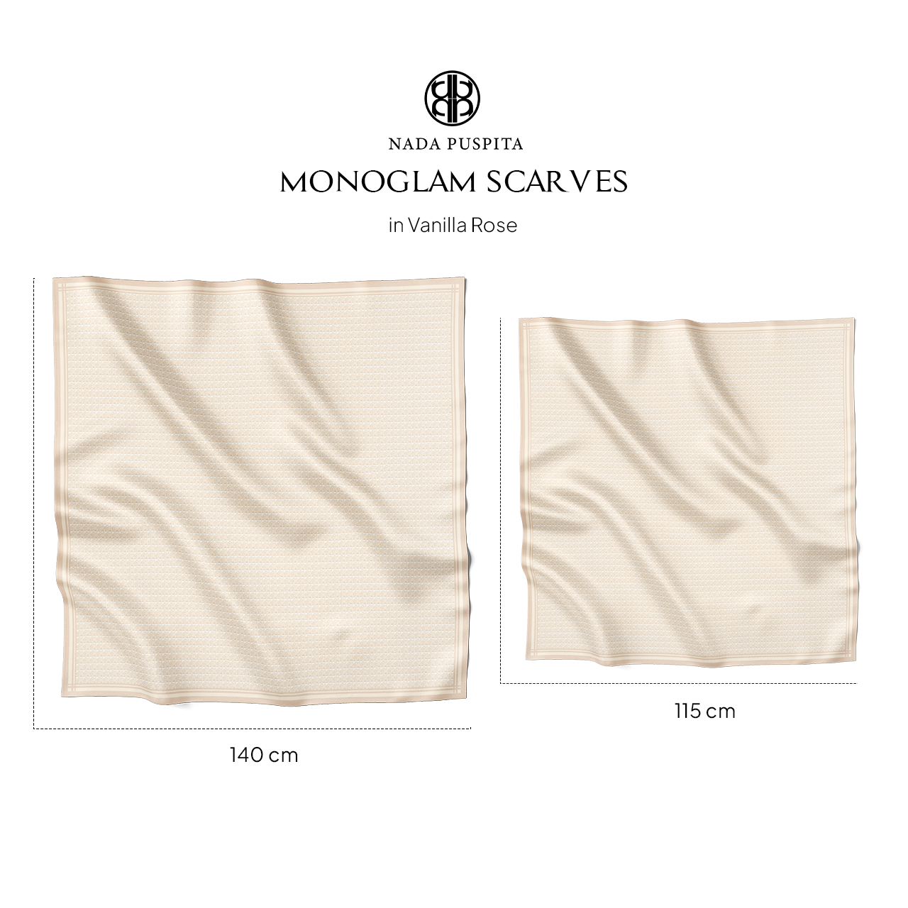 Exclusive from the runway of Jakarta Fashion Week 2026, this scarf features Nada Puspita’s signature all-over monogram pattern, set in a diagonal arrangement, as a visual expression of identity and timeless elegance.