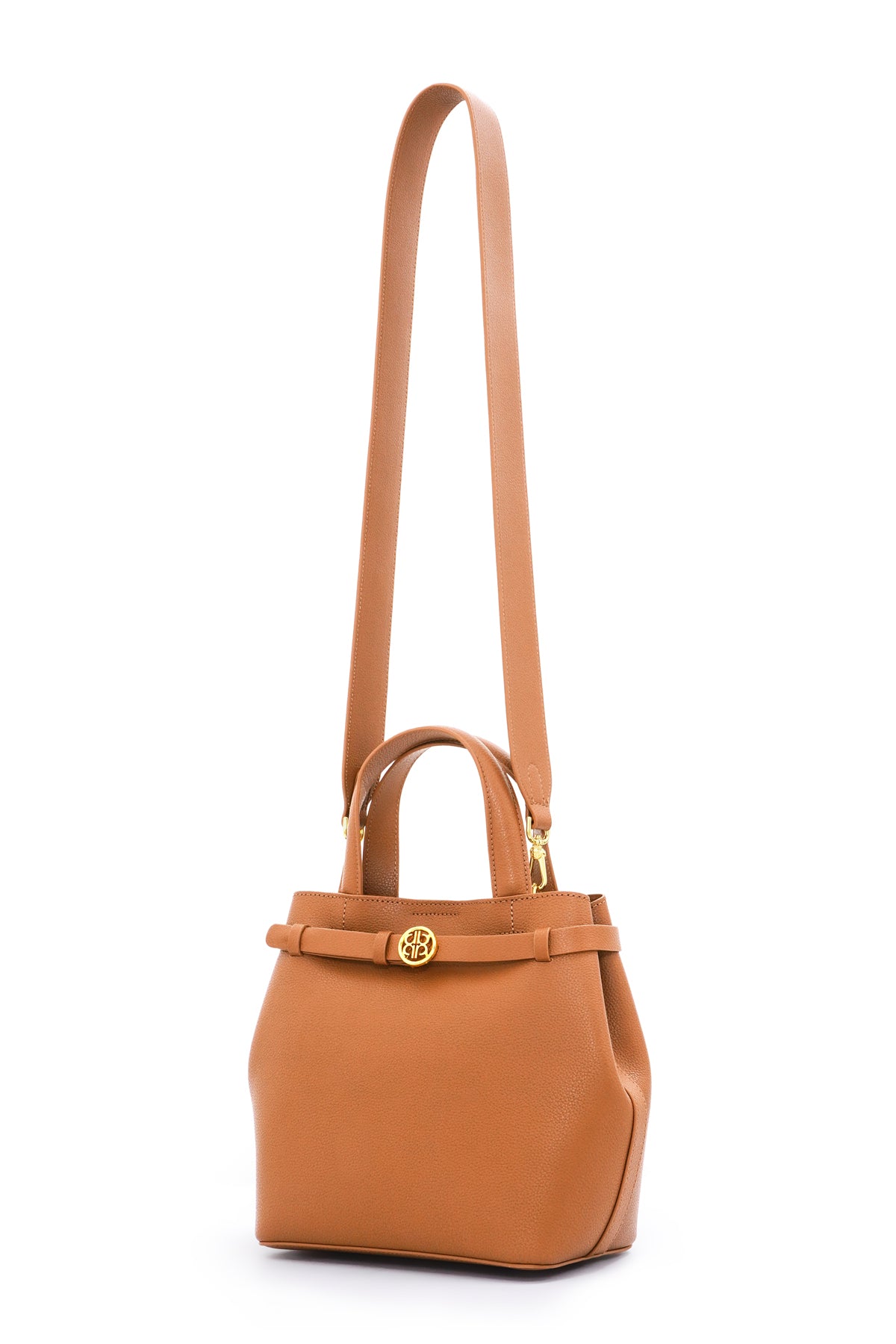 Made from genuine cow leather, this top-handle style bag features a structured form with a standout belt buckle and monogram accent. The magnetic closure secures a spacious main compartment for essentials, while the D-rings allow a strap to be attached, enabling it to also be worn crossbody.