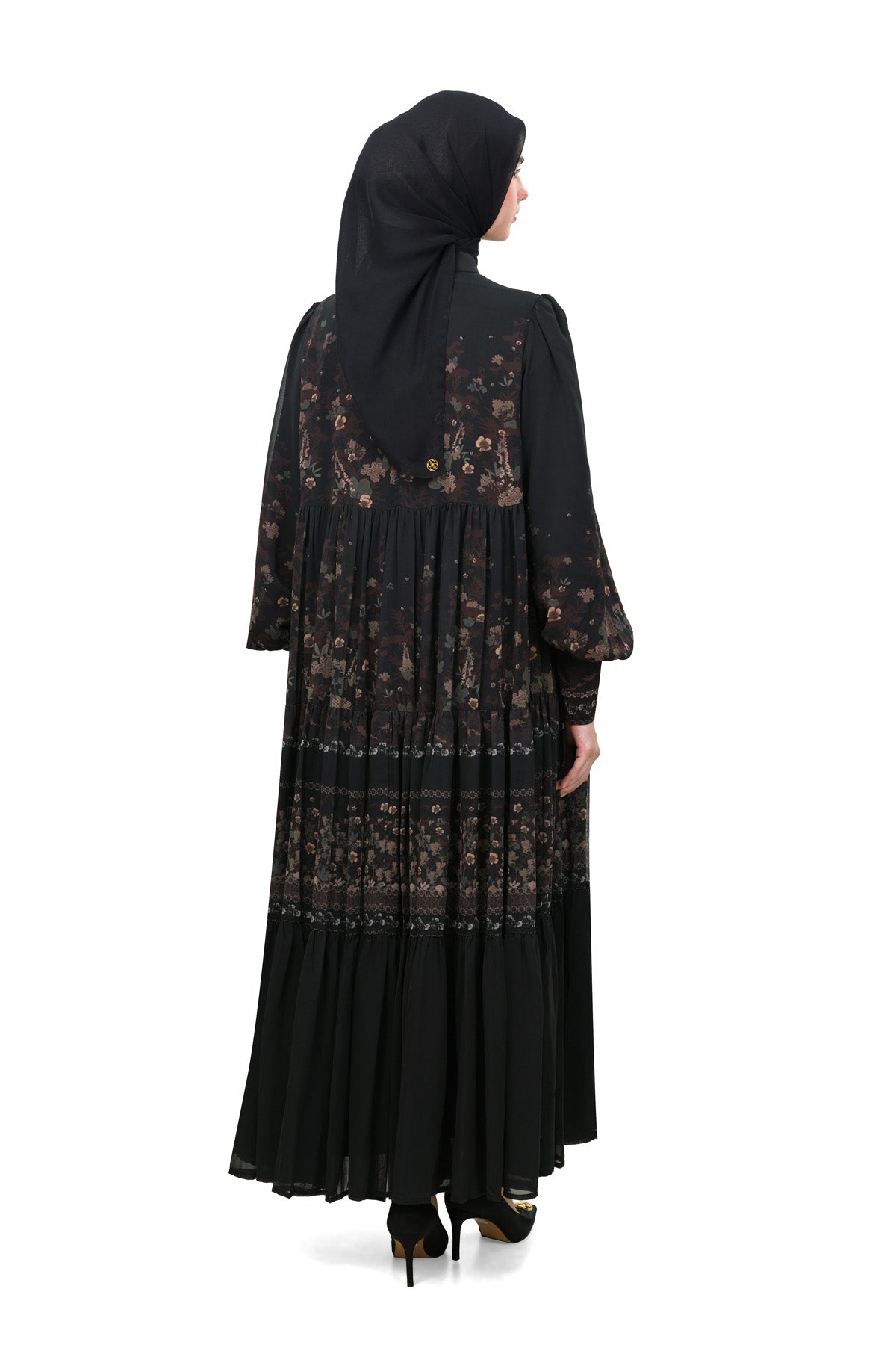 Inspired by the beauty of autumn bloom, this tiered dress captures unmissable femininity through its ruffle tiers and voluminous sleeves. Completed with a high round collar and slightly high shoulders, it offers a graceful look that feels classic, romantic, and contemporary.