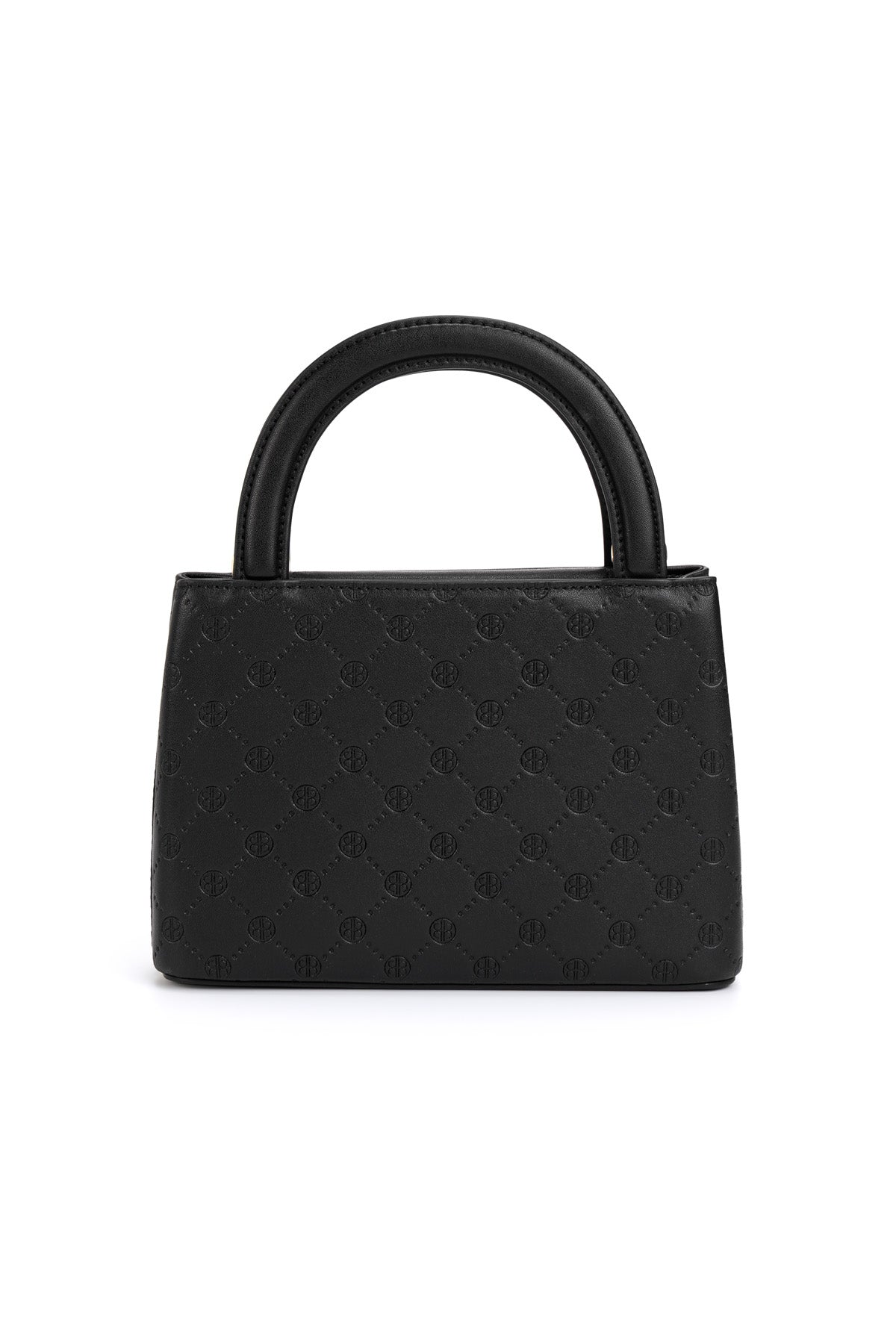 A top handle bag with a structured design featuring an all-over embossed monogram pattern and faux crystal–adorned gold-tone hardware at the center for an iconic look. Finished with a detachable chain strap, this piece is perfect for carrying daily essentials and elevating any look from day to evening.