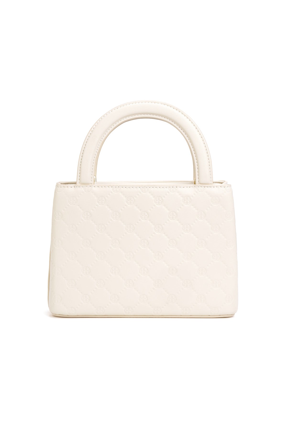 A top handle bag with a structured design featuring an all-over embossed monogram pattern and faux crystal–adorned gold-tone hardware at the center for an iconic look. Finished with a detachable chain strap, this piece is perfect for carrying daily essentials and elevating any look from day to evening.