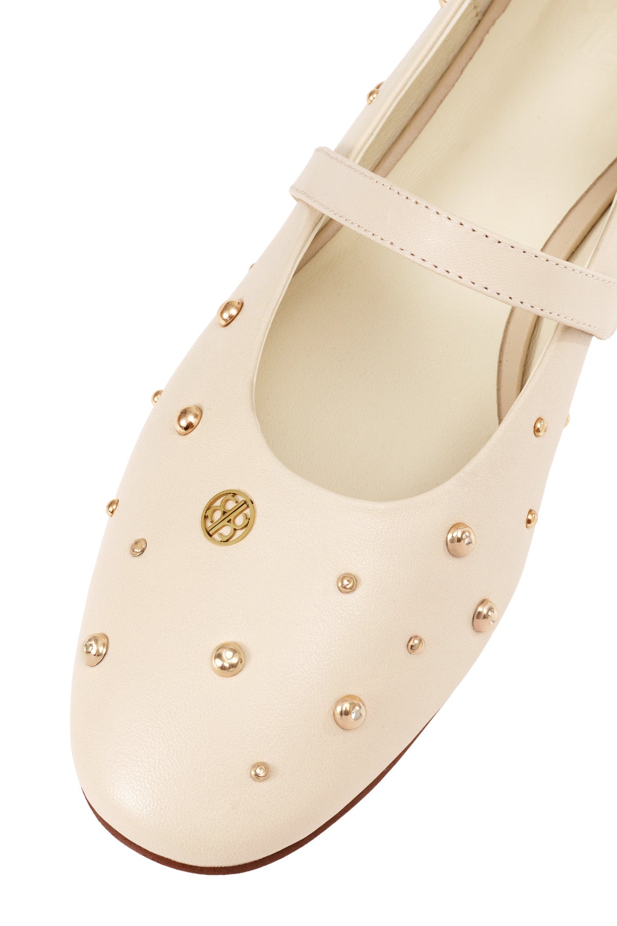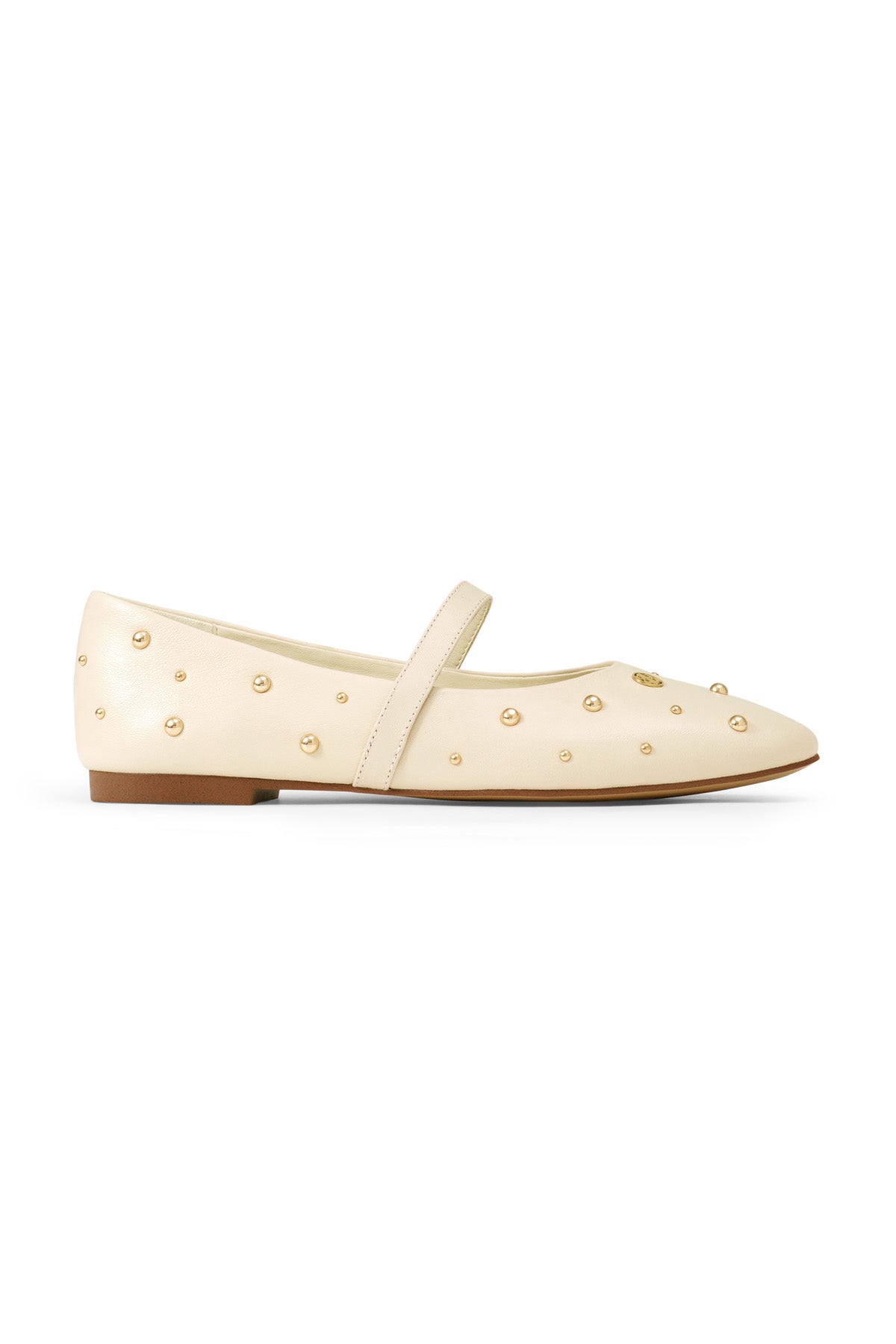A classic Mary Jane designed with a modern edge. Crafted in genuine leather with an elegant almond-toe profile, this pair is finished with sleek stud embellishments, perfect for elevating everyday dressing with an understated attitude.