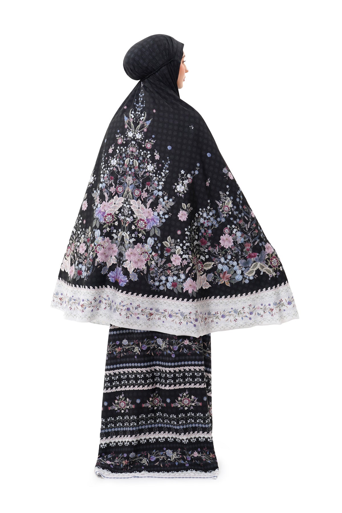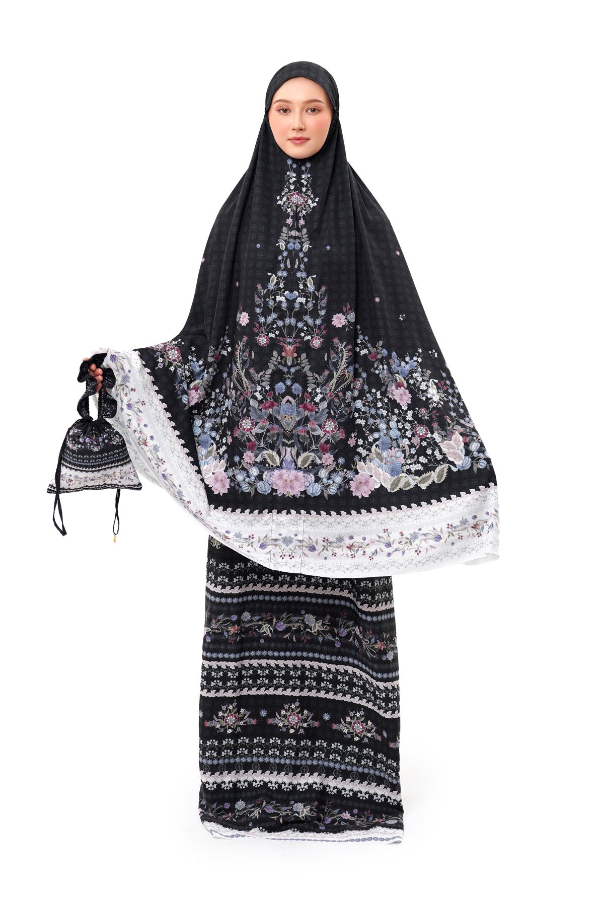 This prayer robe is designed for serene moments during the celebration season, featuring intricate motifs and elegant colors. It comes with an adjustable face opening with a zipper and drawstring for a comfortable, secure fit. It also includes a matching pouch for easy carrying and storage.