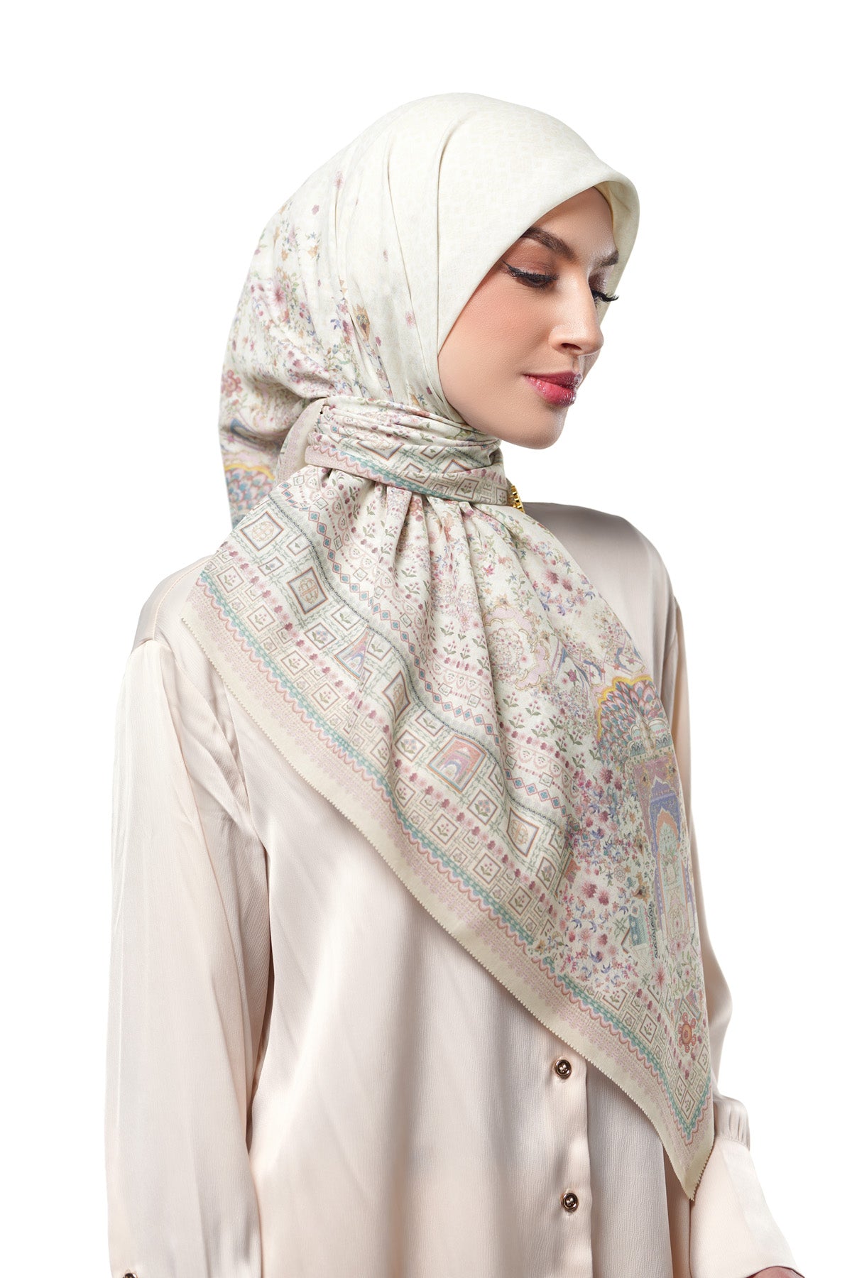 The design blends intricate Moroccan Islamic geometric patterns with delicate floral artwork. Available in 10 stunning colors.